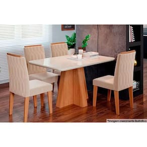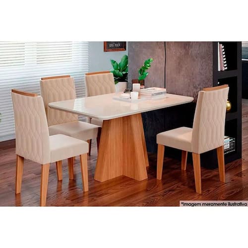 Sala de Jantar Completa Maite c/ Tampo Madeirado c/ Vidro Canto Curvo 130x80cm e 4 Cadeiras Paola Savana-Nature-Madeirado/Suede Nude Bege - Cimol Abaixo segue os produtos do KIT: Sala de Jantar Completa Maite c/ Tampo Madeirado c/ Vidro Canto Curvo 130x80cm e 4 Cadeiras Paola Savana-Nature-Madeirado/Suede Nude Bege - Cimol