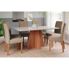 Sala de Jantar Completa Maitê Tampo Madeirado c/ Vidro 160x80cm e 6 Cadeiras Clarice Cinamomo/Off White - Carvalho/Linho Bege - Cimol Abaixo segue os produtos do KIT: Sala de Jantar Completa Maitê Tampo Madeirado c/ Vidro 160x80cm e 6 Cadeiras Clarice Cinamomo/Off White - Carvalho/Linho Bege - Cimol