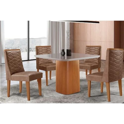 Sala de Jantar Completa Maldivas c/ Tampo Madeirado c/ Vidro Canto Curvo 90x90cm e 4 Cadeiras Dafne Naturale/Off White - Corano Capuccino - Rufato Abaixo segue os produtos do KIT: Sala de Jantar Completa Maldivas c/ Tampo Madeirado c/ Vidro Canto Curvo 90x90cm e 4 Cadeiras Dafne Naturale/Off White - Corano Capuccino - Rufato