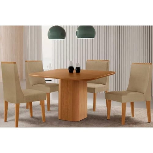 Sala de Jantar Completa Maldivas c/ Tampo Madeirado Canto Curvo 90x90cm e 4 Cadeiras Dakota Naturale - Linho Bege - Rufato Abaixo segue os produtos do KIT: Sala de Jantar Completa Maldivas c/ Tampo Madeirado Canto Curvo 90x90cm e 4 Cadeiras Dakota Naturale - Linho Bege - Rufato