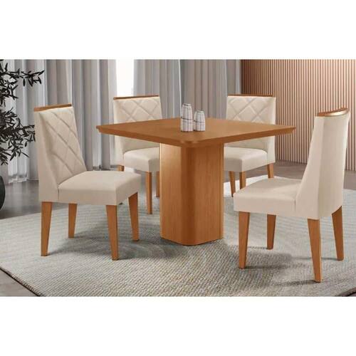 Sala de Jantar Completa Maldivas c/ Tampo Madeirado Canto Curvo 90x90cm e 4 Cadeiras Pietá Naturale - Suede Creme - Rufato Abaixo segue os produtos do KIT: Sala de Jantar Completa Maldivas c/ Tampo Madeirado Canto Curvo 90x90cm e 4 Cadeiras Pietá Naturale - Suede Creme - Rufato