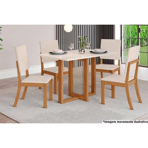Sala de Jantar Completa Natalí c/ Tampo Madeirado c/ Vidro Reto 120x80cm e 4 Cadeiras Milla Nature/Veludo Light Linho - Henn Abaixo segue os produtos do KIT: Sala de Jantar Completa Natalí c/ Tampo Madeirado c/ Vidro Reto 120x80cm e 4 Cadeiras Milla Nature/Veludo Light Linho - Henn