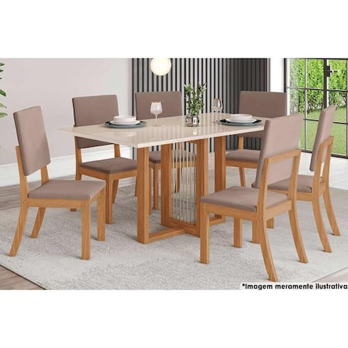 Sala de Jantar Completa Natalí c/ Tampo Madeirado c/ Vidro Reto 160x90cm e 6 Cadeiras Milla Nature/Veludo Light Marrom Amêndoa - Henn Abaixo segue os produtos do KIT: Sala de Jantar Completa Natalí c/ Tampo Madeirado c/ Vidro Reto 160x90cm e 6 Cadeiras Milla Nature/Veludo Light Marrom Amêndoa - Henn