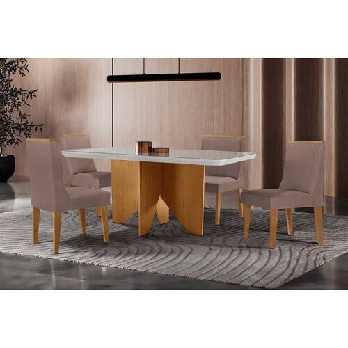 Sala de Jantar Completa Nevada c/ Tampo Madeirado c/ Vidro Canto Curvo 120x80cm e 4 Cadeiras Dakota Naturale/Off White - Linho Capuccino - Rufato Abaixo segue os produtos do KIT: Sala de Jantar Completa Nevada c/ Tampo Madeirado c/ Vidro Canto Curvo 120x80cm e 4 Cadeiras Dakota Naturale/Off White - Linho Capuccino - Rufato