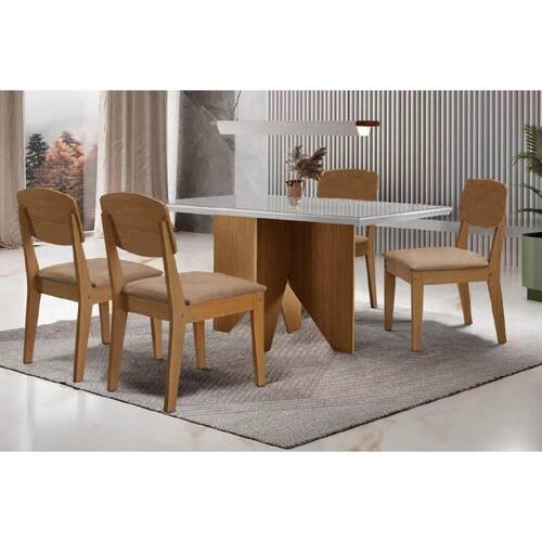 Sala de Jantar Completa Nevada c/ Tampo Madeirado c/ Vidro Canto Curvo 120x80cm e 4 Cadeiras Havana Naturale/Off White - Corano Capuccino - Rufato Abaixo segue os produtos do KIT: Sala de Jantar Completa Nevada c/ Tampo Madeirado c/ Vidro Canto Curvo 120x80cm e 4 Cadeiras Havana Naturale/Off White - Corano Capuccino - Rufato