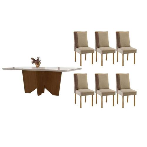 Sala de Jantar Completa Nevada c/ Tampo Madeirado c/ Vidro Canto Curvo 180x90cm e 6 Cadeiras Tilia Naturale/Off White - Suede Creme - Rufato Abaixo segue os produtos do KIT: Sala de Jantar Completa Nevada c/ Tampo Madeirado c/ Vidro Canto Curvo 180x90cm e 6 Cadeiras Tilia Naturale/Off White - Suede Creme - Rufato