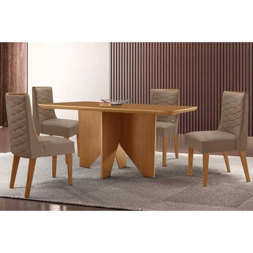 Sala de Jantar Completa Nevada c/ Tampo Madeirado Canto Curvo 120x80cm e 4 Cadeiras Dafne Naturale - Suede Capuccino - Rufato Abaixo segue os produtos do KIT: Sala de Jantar Completa Nevada c/ Tampo Madeirado Canto Curvo 120x80cm e 4 Cadeiras Dafne Naturale - Suede Capuccino - Rufato