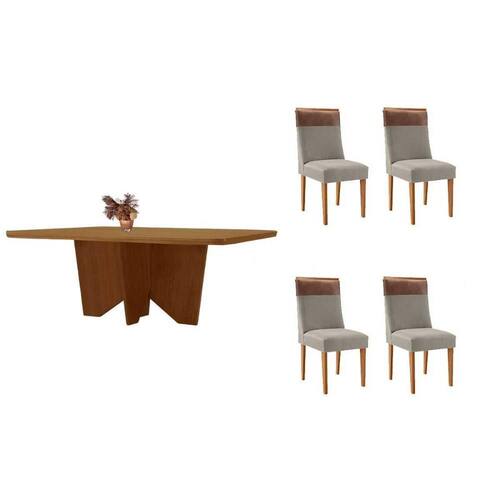 Sala de Jantar Completa Nevada c/ Tampo Madeirado Canto Curvo 120x80cm e 4 Cadeiras Jaspe Naturale - Suede Capuccino - Rufato - Sala de Jantar Completa Rufato