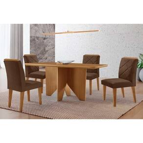 Sala de Jantar Completa Nevada c/ Tampo Madeirado Canto Curvo 120x80cm e 4 Cadeiras Pietá Naturale - Suede Marrom - Rufato Abaixo segue os produtos do KIT: Sala de Jantar Completa Nevada c/ Tampo Madeirado Canto Curvo 120x80cm e 4 Cadeiras Pietá Naturale - Suede Marrom - Rufato