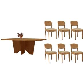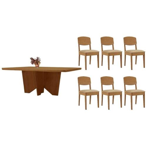 Sala de Jantar Completa Nevada c/ Tampo Madeirado Canto Curvo 180x90cm e 6 Cadeiras Havana Naturale - Linho Bege - Rufato - Sala de Jantar Completa Rufato com 6 Cadeiras