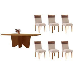 Sala de Jantar Completa Nevada c/ Tampo Madeirado Canto Curvo 180x90cm e 6 Cadeiras Jaspe Naturale - Suede Creme - Rufato Abaixo segue os produtos do KIT: Sala de Jantar Completa Nevada c/ Tampo Madeirado Canto Curvo 180x90cm e 6 Cadeiras Jaspe Naturale - Suede Creme - Rufato