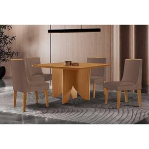 Sala de Jantar Completa Nevada c/ Tampo Madeirado Canto Curvo 90x90cm e 4 Cadeiras Dakota Naturale - Corano Capuccino - Rufato Abaixo segue os produtos do KIT: Sala de Jantar Completa Nevada c/ Tampo Madeirado Canto Curvo 90x90cm e 4 Cadeiras Dakota Naturale - Corano Capuccino - Rufato