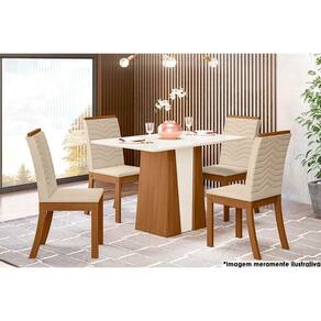 Sala de Jantar Completa Orus c/ Tampo Madeirado 120x80cm e 4 Cadeiras Isa Nature/Off White - Linho Bege - Henn