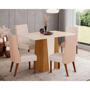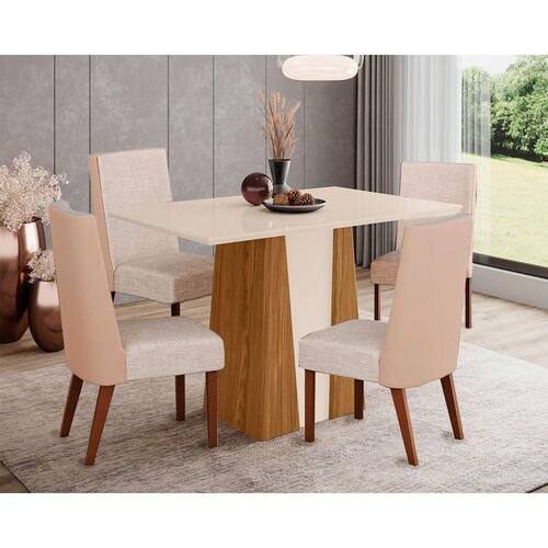 Sala de Jantar Completa Orus Tampo Madeirado c/ Vidro 120x80cm e 4 Cadeiras Anne Nature/Courano/Creme - Henn Abaixo segue os produtos do KIT: Sala de Jantar Completa Orus Tampo Madeirado c/ Vidro 120x80cm e 4 Cadeiras Anne Nature/Courano/Creme - Henn