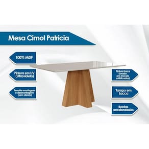 Mesa de Sala Jantar Patricia c/ Tampo Madeirado c/ Vidro 160X80cm Nature/Off White - Cimol