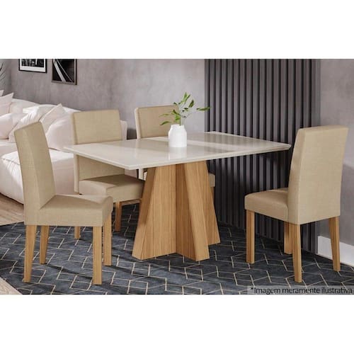 Sala de Jantar Completa Patricia Tampo Madeirado c/ Vidro 130x80cm e 4 Cadeiras Maia Nature/OW/Gengibre - Cimol Abaixo segue os produtos do KIT: Sala de Jantar Completa Patricia Tampo Madeirado c/ Vidro 130x80cm e 4 Cadeiras Maia Nature/OW/Gengibre - Cimol
