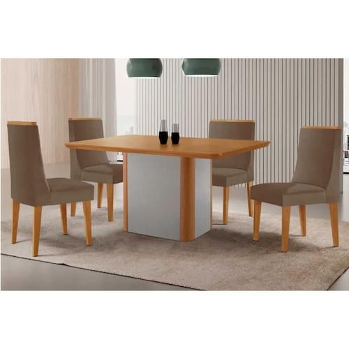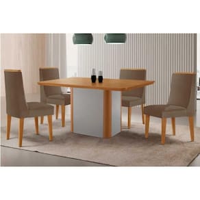 Sala de Jantar Completa Pietá c/ Tampo Madeirado Canto Curvo 120x80cm e 4 Cadeiras Dakota Naturale/Off White - Suede Capuccino - Rufato Abaixo segue os produtos do KIT: Sala de Jantar Completa Pietá c/ Tampo Madeirado Canto Curvo 120x80cm e 4 Cadeiras Dakota Naturale/Off White - Suede Capuccino - Rufato