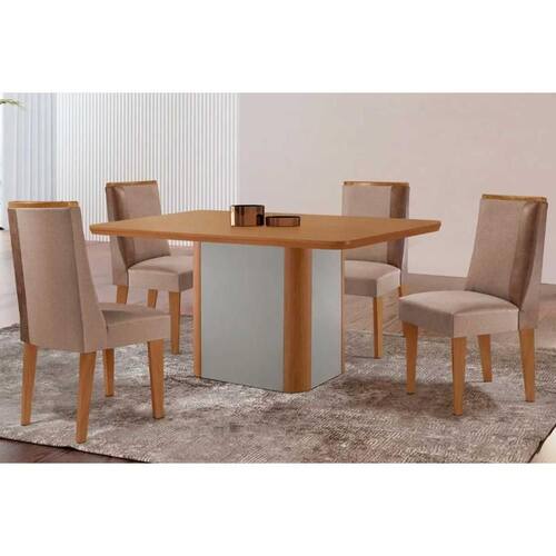 Sala de Jantar Completa Pietá c/ Tampo Madeirado Canto Curvo 120x80cm e 4 Cadeiras Tilia Naturale/Off White - Suede Capuccino - Rufato Abaixo segue os produtos do KIT: Sala de Jantar Completa Pietá c/ Tampo Madeirado Canto Curvo 120x80cm e 4 Cadeiras Tilia Naturale/Off White - Suede Capuccino - Rufato