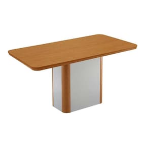 Mesa de Sala Jantar Pietá c/ Tampo Madeirado c/ Canto Curvo 180X90cm Off White/Naturale/Naturale - Rufato