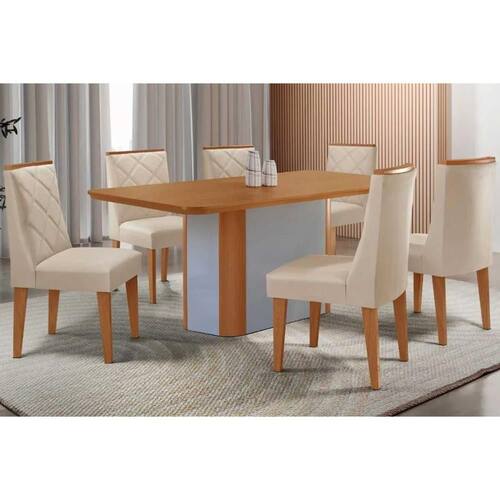 Sala de Jantar Completa Pietá c/ Tampo Madeirado Canto Curvo 180x90cm e 6 Cadeiras Pietá Naturale/Off White - Suede Creme - Rufato Abaixo segue os produtos do KIT: Sala de Jantar Completa Pietá c/ Tampo Madeirado Canto Curvo 180x90cm e 6 Cadeiras Pietá Naturale/Off White - Suede Creme - Rufato