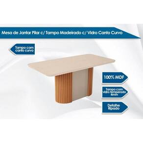 Mesa de Sala Jantar Pilar c/ Tampo Madeirado c/ Vidro Canto Curvo 180X90cm Flex Naturale/Naturale ou Off White - Rufato