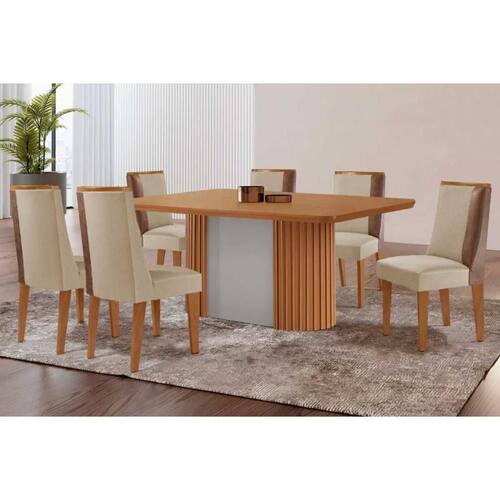 Sala de Jantar Completa Pilar c/ Tampo Madeirado Canto Curvo 180x90cm e 6 Cadeiras Tilia Naturale/Off White - Suede Creme - Rufato Abaixo segue os produtos do KIT: Sala de Jantar Completa Pilar c/ Tampo Madeirado Canto Curvo 180x90cm e 6 Cadeiras Tilia Naturale/Off White - Suede Creme - Rufato
