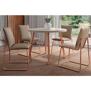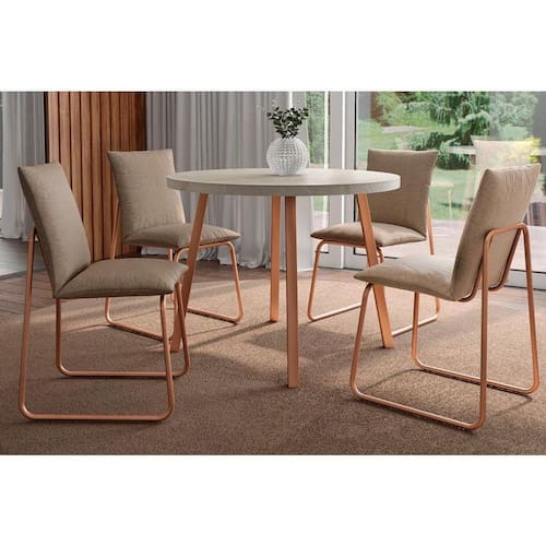 Sala de Jantar Completa Stellar 1599 Aço c/ Tampo Madeirado 100cm e 4 Cadeiras Soft Rose/Petra - Rose/Areia - Carraro Abaixo segue os produtos do KIT: Sala de Jantar Completa Stellar 1599 Aço c/ Tampo Madeirado 100cm e 4 Cadeiras Soft Rose/Petra - Rose/Areia - Carraro