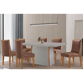Sala de Jantar Completa Tilia c/ Tampo Madeirado c/ Vidro Canto Curvo 180x90cm e 6 Cadeiras Dakota Naturale/Off White - Corano Capuccino - Rufato Abaixo segue os produtos do KIT: Sala de Jantar Completa Tilia c/ Tampo Madeirado c/ Vidro Canto Curvo 180x90cm e 6 Cadeiras Dakota Naturale/Off White - Corano Capuccino - Rufato