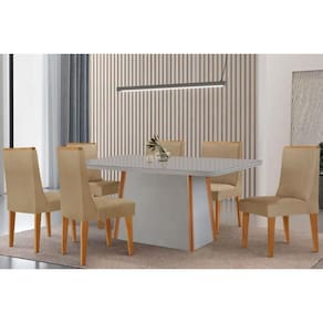 Sala de Jantar Completa Tilia c/ Tampo Madeirado c/ Vidro Canto Curvo 180x90cm e 6 Cadeiras Dakota Naturale/Off White - Linho Bege - Rufato Abaixo segue os produtos do KIT: Sala de Jantar Completa Tilia c/ Tampo Madeirado c/ Vidro Canto Curvo 180x90cm e 6 Cadeiras Dakota Naturale/Off White - Linho Bege - Rufato