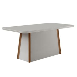 Mesa de Sala Jantar Tília c/ Tampo Madeirado c/ Vidro Canto Curvo 180X90cm Off White/Naturale/Off White - Rufato