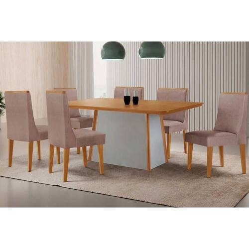 Mesa de Sala Jantar Tília c/ Tampo Madeirado c/ Canto Curvo 120X80cm Off White/Naturale/Naturale - Rufato