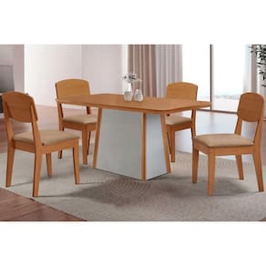 Sala de Jantar Completa Tilia c/ Tampo Madeirado Canto Curvo 120x80cm e 4 Cadeiras Havana Naturale/Off White - Linho Bege - Rufato Abaixo segue os produtos do KIT: Sala de Jantar Completa Tilia c/ Tampo Madeirado Canto Curvo 120x80cm e 4 Cadeiras Havana Naturale/Off White - Linho Bege - Rufato