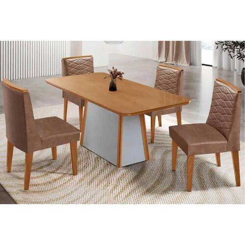 Sala de Jantar Completa Tilia c/ Tampo Madeirado Canto Curvo 120x80cm e 4 Cadeiras Maldivas Naturale/Off White - Corano Capuccino - Rufato Abaixo segue os produtos do KIT: Sala de Jantar Completa Tilia c/ Tampo Madeirado Canto Curvo 120x80cm e 4 Cadeiras Maldivas Naturale/Off White - Corano Capuccino - Rufato