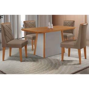 Sala de Jantar Completa Tilia c/ Tampo Madeirado Canto Curvo 120x80cm e 4 Cadeiras Pietá Naturale/Off White - Suede Capuccino - Rufato Abaixo segue os produtos do KIT: Sala de Jantar Completa Tilia c/ Tampo Madeirado Canto Curvo 120x80cm e 4 Cadeiras Pietá Naturale/Off White - Suede Capuccino - Rufato