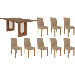 Sala de Jantar Completa Valentina Tampo Madeirado 210x100cm e 8 Cadeiras Maia Cinamomo - Nature/Suede Gengibre Bege - Cimol Abaixo segue os produtos do KIT: Sala de Jantar Completa Valentina Tampo Madeirado 210x100cm e 8 Cadeiras Maia Cinamomo - Nature/Suede Gengibre Bege - Cimol
