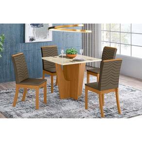 Sala de Jantar Completa Vértice Tampo Madeirado c/ Vidro 90x90cm e 4 Cadeiras Isa Nature/Veludo Light Bege Vanilla - Henn