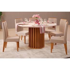 Sala De Jantar Completa Viena Tampo Madeirado C/ Vidro 136cm E 6 Cadeiras Lia Freijo/off White - Suede Kraft - Dj Móveis