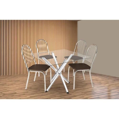 Sala De Jantar Completa Volga C/ Tampo De Vidro 90cm E 4 Cadeiras Noruega Cromada - Courano Marrom - Kappesberg
