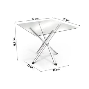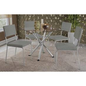 Sala De Jantar Completa Volga C/ Tampo De Vidro 90x90cm E 4 Cadeiras Zaria Cromado - Boucle Cinza - Kappesberg