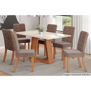 Sala de Jantar Completa Lins c/ Tampo Madeirado c/ Vidro 160x90cm e 6 Cadeiras Esther Nature/Cacao - Henn