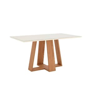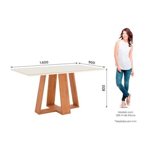 Mesa de Sala Jantar Lins SC93 c/Tampo Madeirado Vidro Reto 160x90cm Nature/Off White - Henn