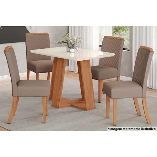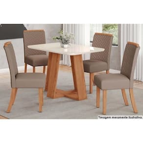 Abaixo segue os produtos do KIT: Sala de Jantar Completa Lins c/ Tampo Madeirado c/ Vidro Curvo 120x80cm e 4 Cadeiras Malu Nature/Marrom Amêndoa - Henn