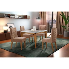Sala De Jantar Liz 120 Tampo MDF com Vidro 4 Cadeiras Safira Rufato