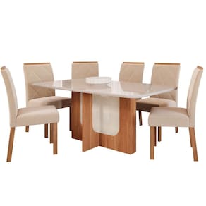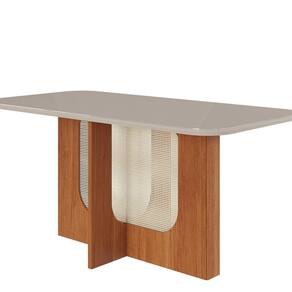 Sala de Jantar Louise 1,60cm com 6 Cadeiras Fernanda Cinamomo/ Offwhite/ Madeira /Nude - Marrom