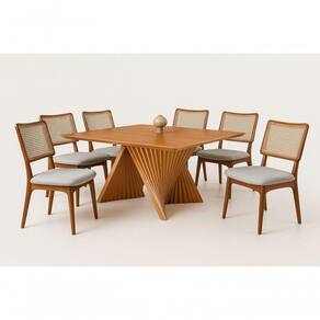 Sala de Jantar Quadrada Madeira Maciça 6 Cadeiras 1,30x1,30m - Vértice - Solare