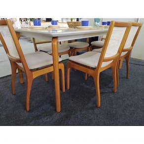 Esta sala de jantar traz uma opção a mais para complementar sua decoração. Uma mesa que possui um design contemporâneo, sua base tem um design moderno com um visual clean. A Mesa Esparta é a pedida certa para você deixar sua casa mais moderna. Tem base em madeira maciça Tauari e tampo em MDF laminado. As cadeiras Barcelona possuem um design moderno e um acabamento muito delicado, que vai trazer ao seu ambiente um ar sofisticado e elegante! As cadeiras tem a estrutura em madeira maciça tauari, madeira ecologicamente correta, e o seu encosto com detalhe em telinha de fibra natural. Quanto a durabilidade, esse modelo não deixa nada a desejar, o seu assento é fabricado com espuma de densidade D-26, muito confortável, e as cadeiras suportam ate 150Kg distribuídos. Se você procura uma cadeira elegante e moderna, esse modelo é perfeito!! Aproveite! Não perca tempo e compre logo a sua sala de jantar.