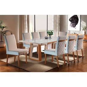 Sala de Jantar Moderna Madeira Maciça 8 cadeiras 2,20x1,10m - Reali - Requinte Salas