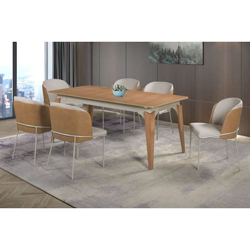 Faz parte do anúncio: 1 Mesa de Jantar 1,60x0,90m - Vitória 6 Cadeiras - Aurora Atenção: Objetos de decoração não fazem parte deste anúncio
