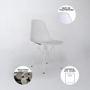Sala De Jantar Mesa Eames Redonda Branca 90cm Base De Ferro Branco Com 4 Cadeiras BrancasA Mesa Eiffel é a escolha ideal para deixar sua casa muito mais bonita e renovada. Essa mesa tem em sua estrutura materiais de altíssima qualidade, que proporciona muito mais resistência, mesmo com o passar dos anos. Ela tem formato redondo e possui espaço para 4 lugares, o que é ideal para um jantar em família. A mesa é versátil e combina com vários tipos de decoração, o que dá mais praticidade em casa.Tipo: MesaModelo: EiffelCor: Tampo Redondo BrancoDimensões do Produto- Altura: 76cm- Diâmetro:Características- Base: Madeira com ferro entrelaçado preto / branco / cobre- Tampo de Vidro / Madeira (mdp) com espessura de 25mm- Necessita Montagem? Parcialmente (Produto Entregue Montado Parcialmente)