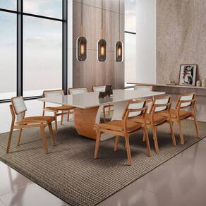 Sala de Jantar Mesa Ellis 220cm Madeira Tampo com Vidro com 8 cadeiras Eva Premium